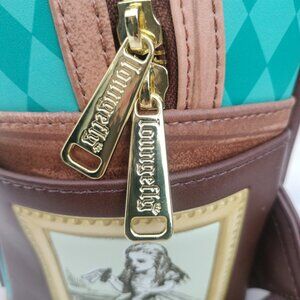 Authentic Loungefly mini backpack featuring the classic Alice in Wonderland theme. This backpack showcases vibrant, detailed artwork inspired by the beloved Disney story, making it a must-have for collectors and fans. Brand: Loungefly Theme: Alice in wonderland Material: Faux leather, Zip around closure, front zip pocket, adjustable shoulder straps, fully lined interior, gold tone hardware. DEMENSIONS 11 x 9 x 5 inches. Shipping materials never removed from the inside, tag still attached and straps also still with original protective attachments. Never used at all