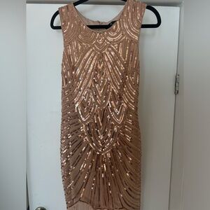 Lulus Full Glam Rose Gold Sequin Fringe Mini Dress