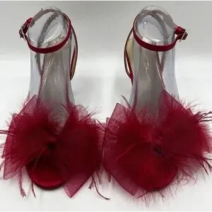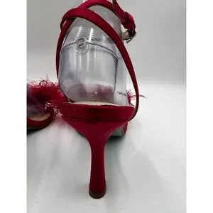 The Betsy Johnson LOTTY Stiletto Sandal in Size 9.5 is a bold and sexy choice for any party or wedding. The hot pink color, strappy design, and stiletto heel make it a stylish and eye-catching option for women looking to make a statement with their footwear. The buckle closure and synthetic upper material ensure a comfortable fit, while the feathers detail adds a whimsical touch to the overall design. Whether it's for a special occasion in the summer, fall, winter, or spring, these Betsey Johnson sandals are sure to elevate any outfit.