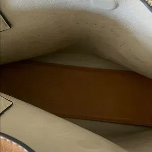 Leather bag I got as a gift, used but in good condition. Only has a small stain near the "H" pattern.
