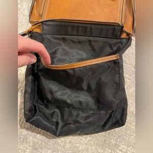 Inside is a little hard to photograph so photos have interior pulled out to see pockets and compartments. Convertible shoulder bag or backpack option.