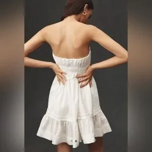 Anthropologie Somerset Strapless Mini Dress White Tiered Size L NWT