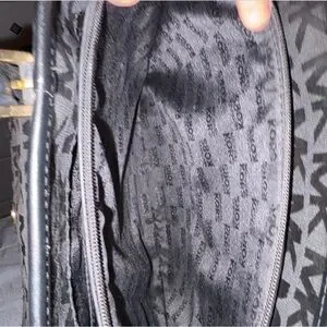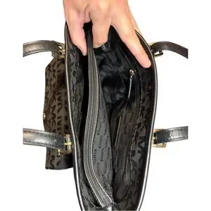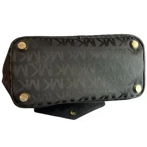 Michael Kors Signature Jet Set Item medium pocket multi-function tote bag in black canvas and leather with gold-tone hardware. Free twilly included. Very clean. EUC $178 retail.