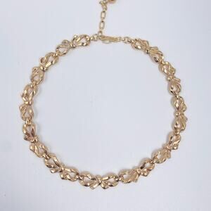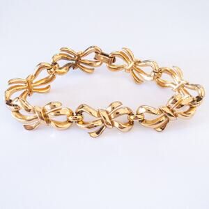 Iconic Crown Trifari vintage set featuring sculpted gold-tone bow link necklace and bracelet ✨