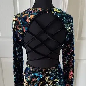 Dazzle in this vibrant sequin dress. Long sleeves and a stunning array of colors. Perfect for any glamorous event.