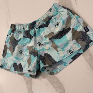 Patagonia Barley Baggies Print Shorts Womens Medium Blue Hibiscus FieldTurquoise