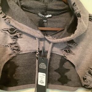 NWT Fashion nova large dark gray cropped hoodies grunge thrashed ripped top