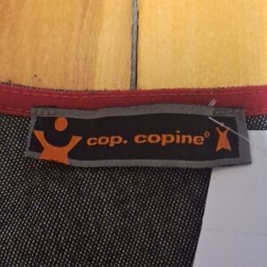 Chic asymmetrical skirt by Cop.Copine. Features gray fabric with plaid trim and red detailin. Eye-catching and modern.