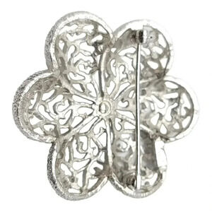 Trifari Silver Toned Flower Open Filigree Textured Brooch Vintage 2" x 2"