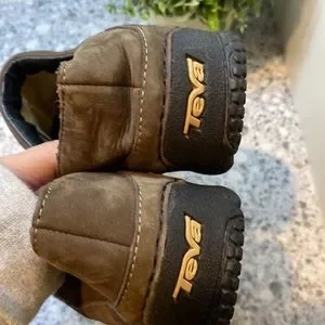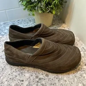Comfortable brown slip-on shoes. Durable design. Ideal for casual wear.