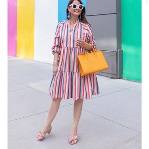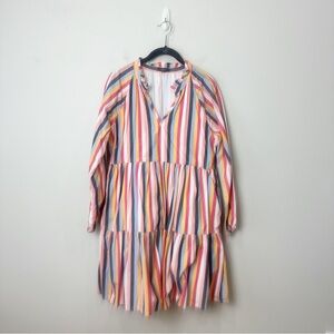 Jcrew Tiered Popover Dress Multi Stripes Poplin