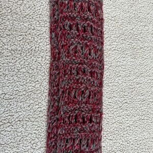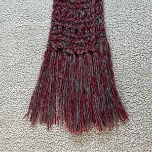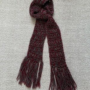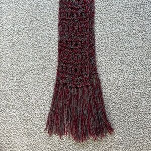 Burgundy & grey extra long knit scarf. Excellent used condition. Like new!
