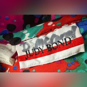 Vintage Judy Bond blouse with neck bow. All over pattern, button down. 70s/80s vintage. Size M.