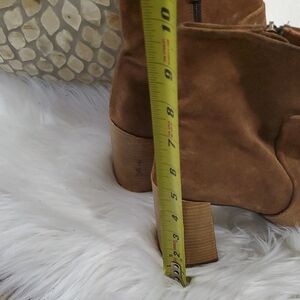 Elevate your wardrobe with these chic tan suede heeled boots. Perfect for adding a touch of sophistication to any outfit.