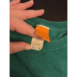 The Legends Of The Hidden Temple Nickelodeon Green Monkeys Team Tee Shirt in size L is a men's T-shirt featuring the iconic green monkeys from the popular Nickelodeon show. Made by Nickelodeon, this regular fit shirt is perfect for fans of the show looking to add a nostalgic touch to their wardrobe. The shirt is in a vibrant green color, making it a standout piece for any casual outfit.
