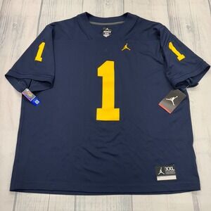 NWT Nike Michigan Wolverines Football Jersey 2XL Jordan Jumpman #1 College Mens Blue