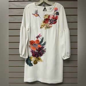Trina Turk Cream Dress with Multicolor Floral Embroidery