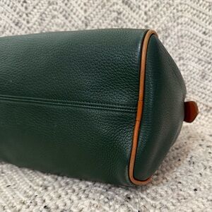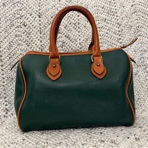 Vintage Dooney and Bourke Fir Green with British Tan Barrel Shoulder bag, similar to Speedy style.