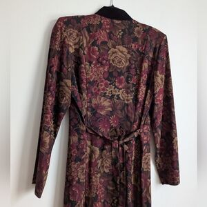 Vintage 80s Victorian Gothic Floral Long Sleeve Maxi Dress With Velvet Collar 8