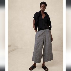 Banana Republic Factory Striped Linen Blend Gray Wide-Leg Pants, Sz M
