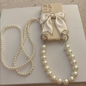 Enhance your style with this elegant iPhone 13ProMax phone case featuring a chic pearl design and a stylish bow accent. Included hand and neck chain for easy carrying. Perfect for adding a touch of sophistication to your accessories collection. #iPhone13ProMax #michelef4