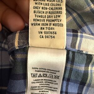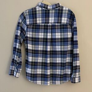L.L. Bean Women’s 100% Organic Cotton Blue White Plaid Button Down Shirt Large