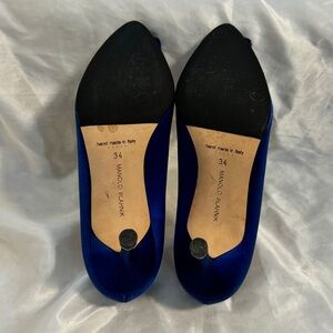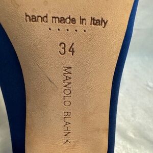Manolo Blahnik Blue Satin Heels with Embellished Buckle
