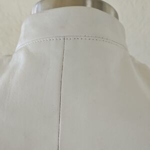 Jones New York Leather Cream Stand Collar Blazer