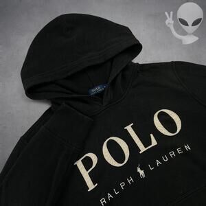Polo Ralph Lauren Spellout Hoodie Medium Black Embriodered Pullover Vintage