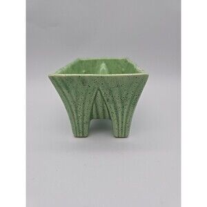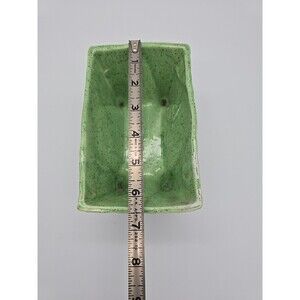 This vintage California pottery planter is a charming addition to any home decor. The light green color and speckled design add a touch of mid-century modern style to your space. Measuring at 3.5 inches in height, this planter is perfect for displaying your favorite succulents or small plants.