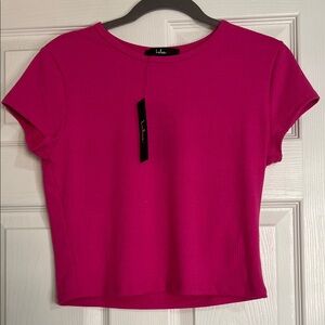 Lulu's Vibrant Pink Ribbed Short Sleeve Top