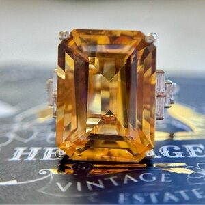 Bold, radiant, and undeniably classic, this striking cocktail ring makes a statement from every angle. Featuring a substantial emerald-cut citrine at its center, the design is timeless and versatile—equally suited as a right-hand ring, a celebratory cocktail ring, or a vibrant birthstone piece.