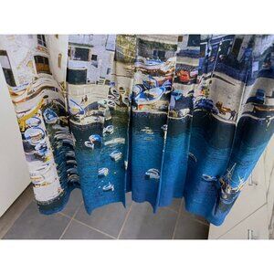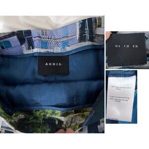 This Akris Marina Grande Capri Port Print Skirt is in great condition! Features a white buildings / boats / water print on a blue background. Cotton, hits above knee length, pleated.