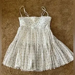 Athleisure flowy dress with attached romper underneath. Soft, beautiful mesh with floral print and pockets!! Only worn once!