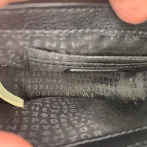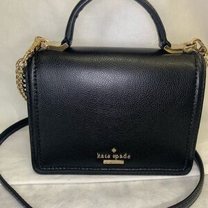Chic black crossbody bag by Kate Spade. Features elegant gold chain details. Ideal for versatile styling.