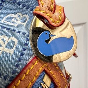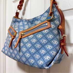 Dooney & Bourke Elisa Vintage Medium Hobo Blue DB Monogram Tan Leather