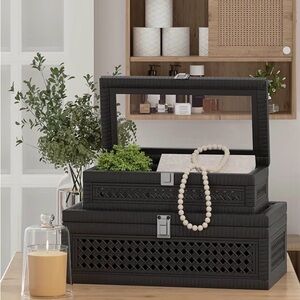 Organize your space with this elegant black woven storage box set. Perfect for keeping your items neatly stored and easily accessible.