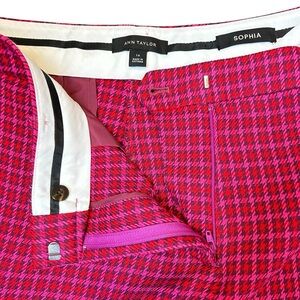Ann Taylor Sophia Pants Size 14 Pink Red Purple Houndstooth Stetchy Classic