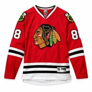 Authentic Chicago Blackhawks Patrick Kane #88 NHL hockey jersey by Reebok. Features the iconic Blackhawks logo on the front, Kane’s name and number on the back, and classic red, black, and white team colors.