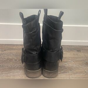 Steve Madden Black Leather Boots with Silver Buckle, Sz 10, Mid Calf