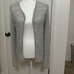 Chico’s Women’s Crochet Gray open front cardigan Sz L