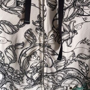 I’ve always loved the cool graphic, the fit and how soft this hoody is. Flattering fit with the ruched part near the bust. The only noteworthy cosmetics flaws are detailed in pic 14. A couple of faint marks on the cuffs that I couldn’t