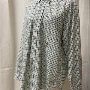 This classic button-up features a tasteful plaid pattern in a subtle yet sophisticated palette of cream and navy with hints of yellow, exuding an air of casual elegance. Made from a premium blend of materials, this shirt offers both comfort and durability. The iconic Tommy Hilfiger lion crest logo embroidered on the chest adds a touch of luxury and brand prestige. With its sharp point collar and adjustable buttoned cuffs, this shirt is both versatile and fashion-forward. Perfect for a day at the office or a casual outing, this vintage piece is a must-have for those who appreciate style with a sense of heritage. A true Y2K gem, it's an excellent addition to any fashion enthusiast's collection, embodying timeless style that effortlessly bridges the gap between past and present.