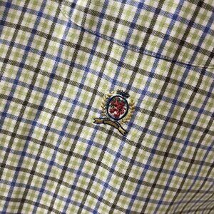 Y2K TOMMY HILFIGER BUTTON DOWN LION CREST MEN Sz S PLAID CHECKERED NORMCORE