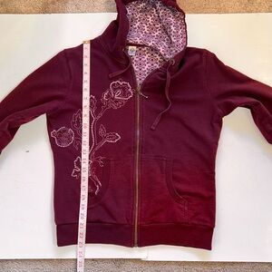 prAna Embroidered Zip Hoodie Burgundy Red Floral Medium