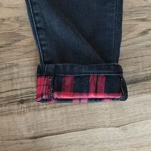 Excellent condition, no rips, stains, or holes that are not factory made. Distressed black skinny jeans with red and black plaid patches behind the distressing - no actual skin will show. Ankles can be cuffed to show the plaid at the bottom. Super cute and stretchy and will still keep you warm due to the holes being covered. Size 3/26. Smoke free home.