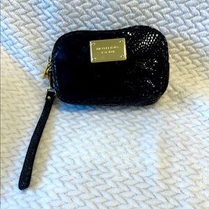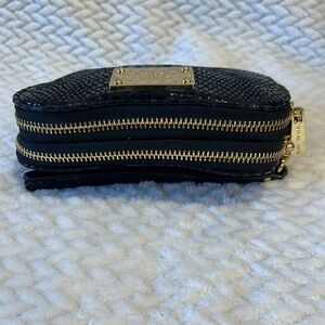Michael Kors Black Snakeskin Exterior Women's Wristlet Clutch Gold Tone Accents
