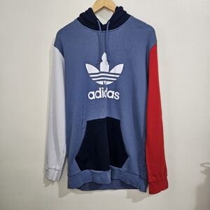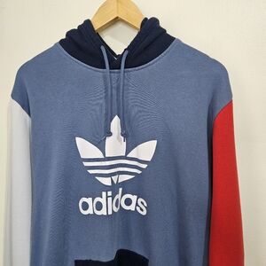 This eye-catching Adidas Originals hoodie features a bold, multi-color colorblock design and the iconic white Trefoil logo across the chest. It is crafted from a soft, comfortable cotton blend fabric, perfect for everyday wear.