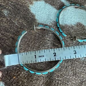 Frederico Jimenez turquoise hoop earrings with a vibrant blue accent. Perfect for adding a pop of color to any outfit. These are 2.75” nice past earring, just too big for my taste, I love these and have the smaller size.
