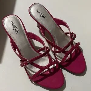Elegant fuchsia heels with strappy design. Comfortable and stylish for any event.